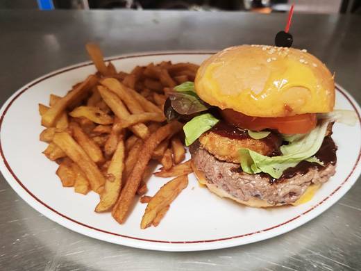 Chaque jour, notre équipe prépare des plats faits maison : pizzas, burgers, salades, viandes et poissons. Nos Coteaux du Loir proviennent du Domaine de Cézin à Marçon, à quelques kilomètres seulement. Le résultat ? Une carte qui sent bon la Sarthe et la vallée du Loir, entre tradition et créativité.